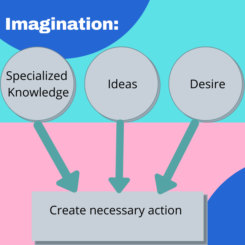 The desire is given shape, form , action thought the aid of the imaginative faculty of the mind.